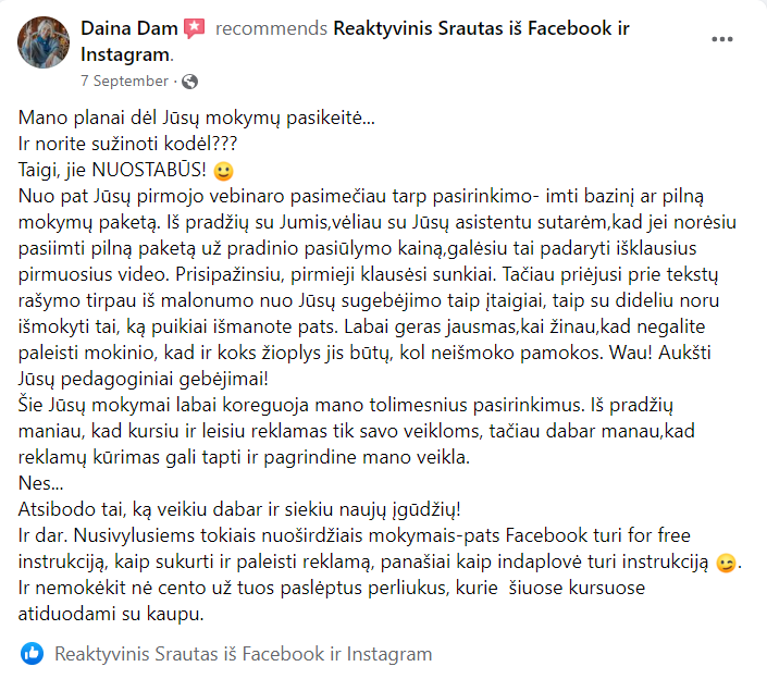 Jau keletą metų aktyviai naudoju Facebook ir Instagram pardavimams.